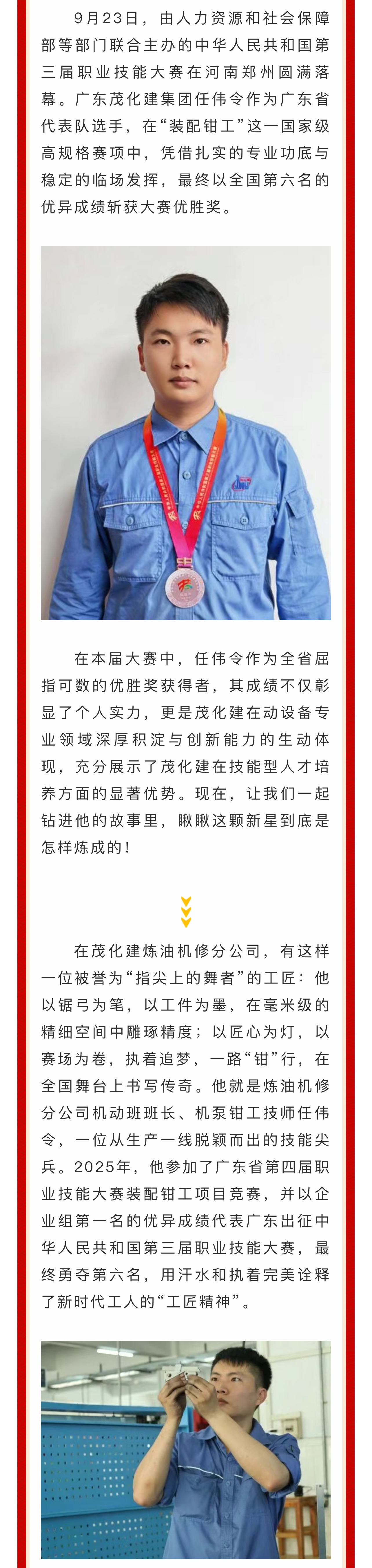 全國第六!廣東茂化建集團(tuán)任偉令斬獲第三屆全國職業(yè)技能大賽優(yōu)勝獎(jiǎng)